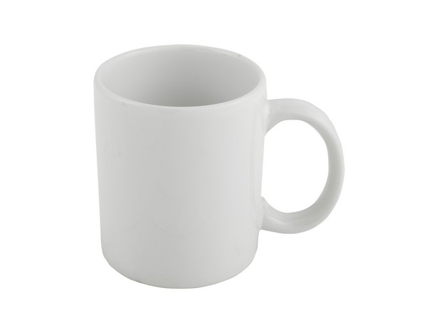 Add your brand design on a sublimation branded coffee mug. Get your message across while your customer has their coffee or tea. White Grade A ceramic mug with sublimation coating. Size: 9.3cm (w) x 10cm (h). Capacity: 330ml. Mug not Dishwasher Safe. Branding: Digital Full Colour 200mm(w) x 75mm(h)